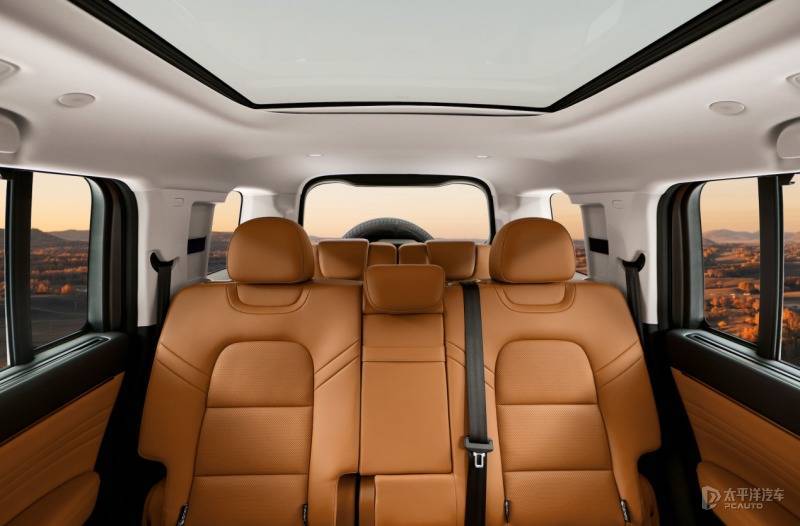 在尺寸方面,车长超4.9 米,车高超1.9米,轴距2850mm,采用2+3+2座椅布局,后两排座椅可纯平放倒,后备厢容积可从 59L 扩展至 1549L。